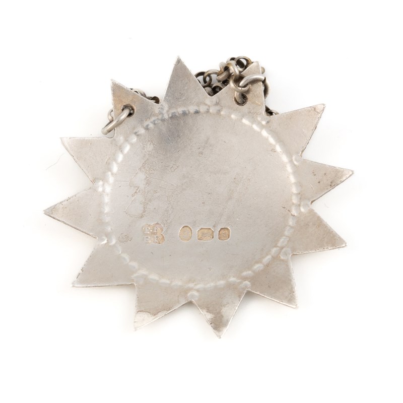 twelve pointed star form with an engraved decorative border, incised 'Brandy', length 5cm, approx. weight 0.3oz.