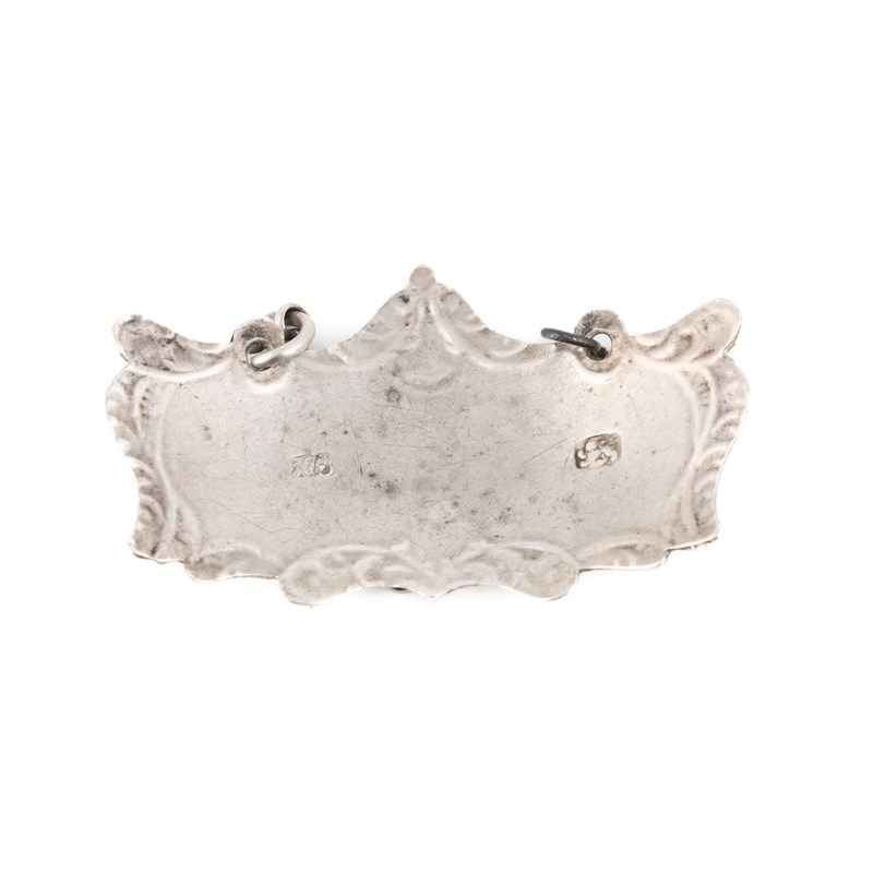 A George III silver wine label,
