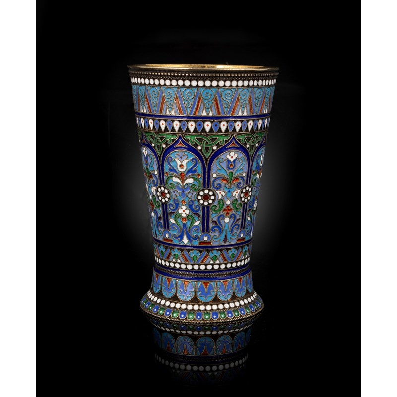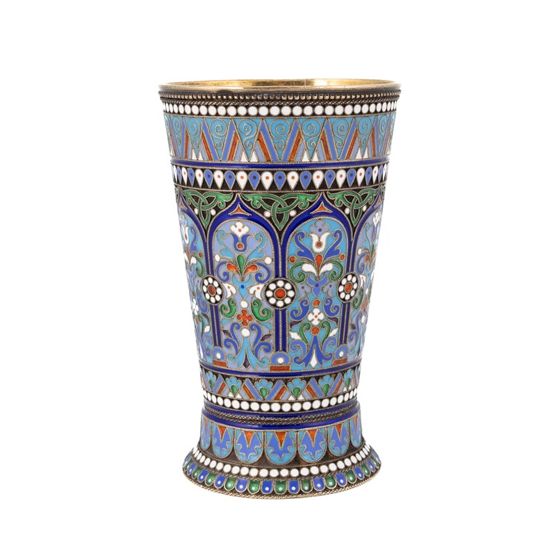 A late-19th century Russian silver-gilt and cloisonné enamel beaker,