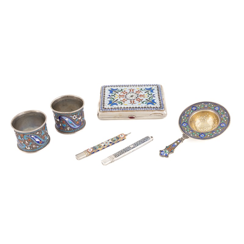 A collection of silver and cloisonné enamel items,
