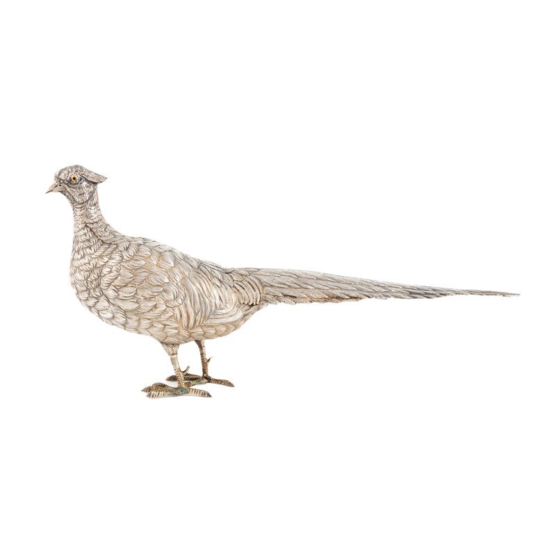 A Dutch novelty silver pheasant flask/caster,