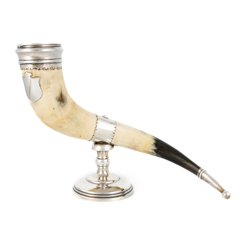A silver-mounted drinking horn,