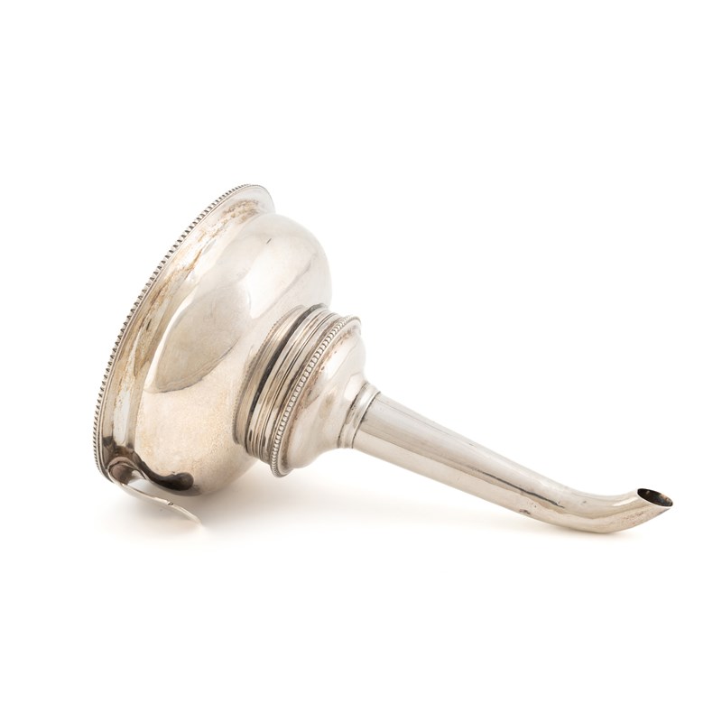 circular form with beaded borders, pull-off tapering spout, length 13.3cm, approx. weight 2.6oz.