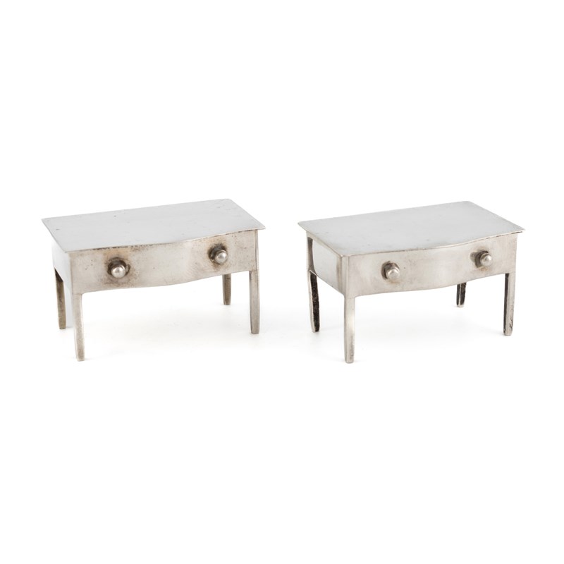 modelled as lowboys, with hinged covers and gilt interiors, length 6cm, total approx. weight 3.4oz. (2)