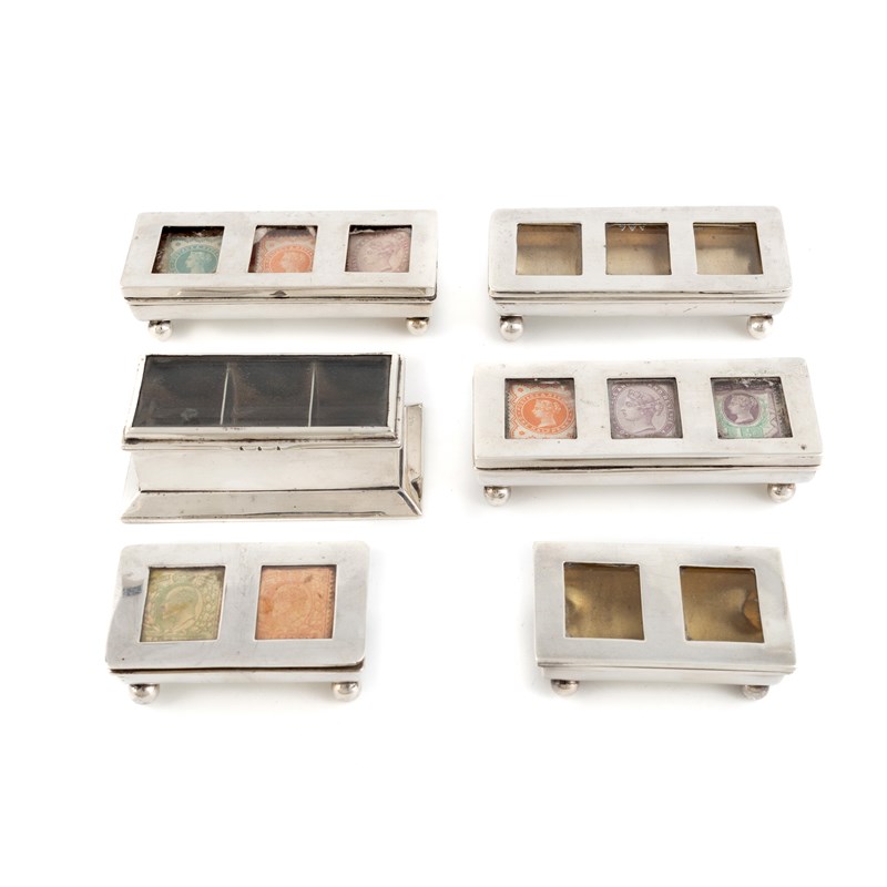 A collection of antique silver stamp boxes,