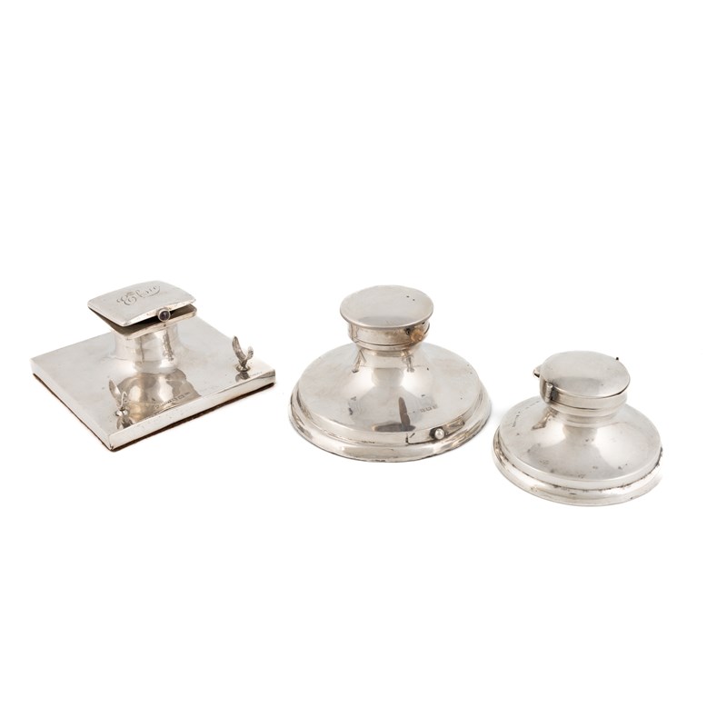 Three silver capstan inkwells/stamp holders,