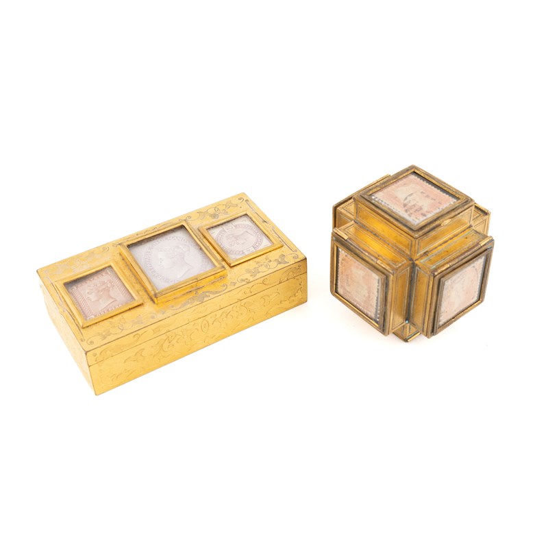 Two gilt metal stamp boxes,