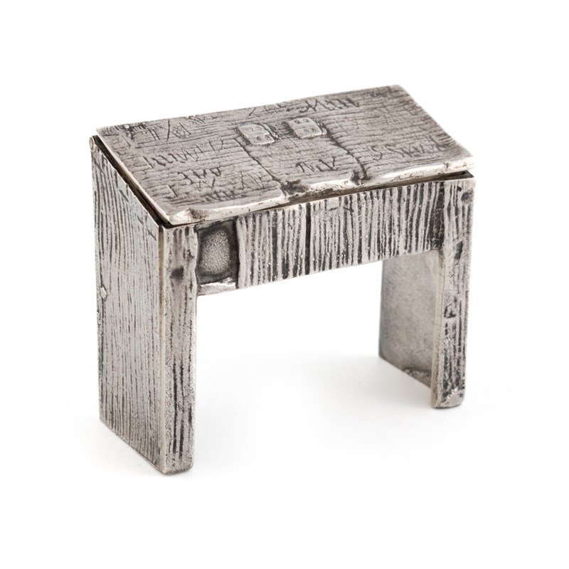A silver 'Shakespeare's desk' stamp box,