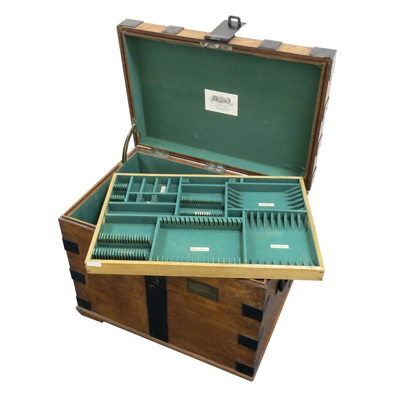 rectangular form, the interior with baize lined trays, 66cm x 51.5cm.