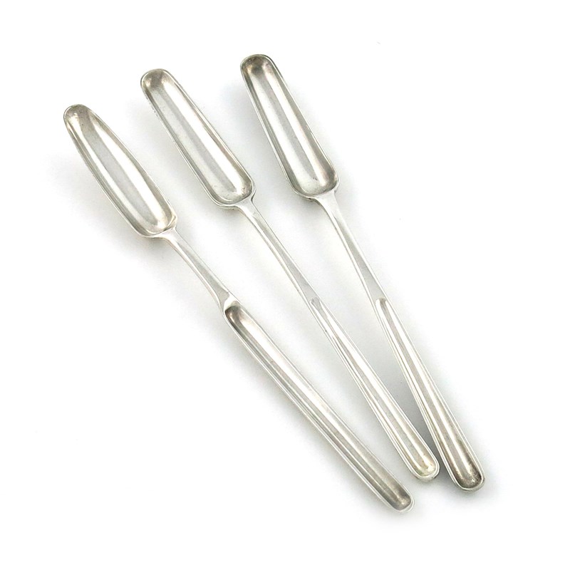 A collection of three antique silver marrow scoops