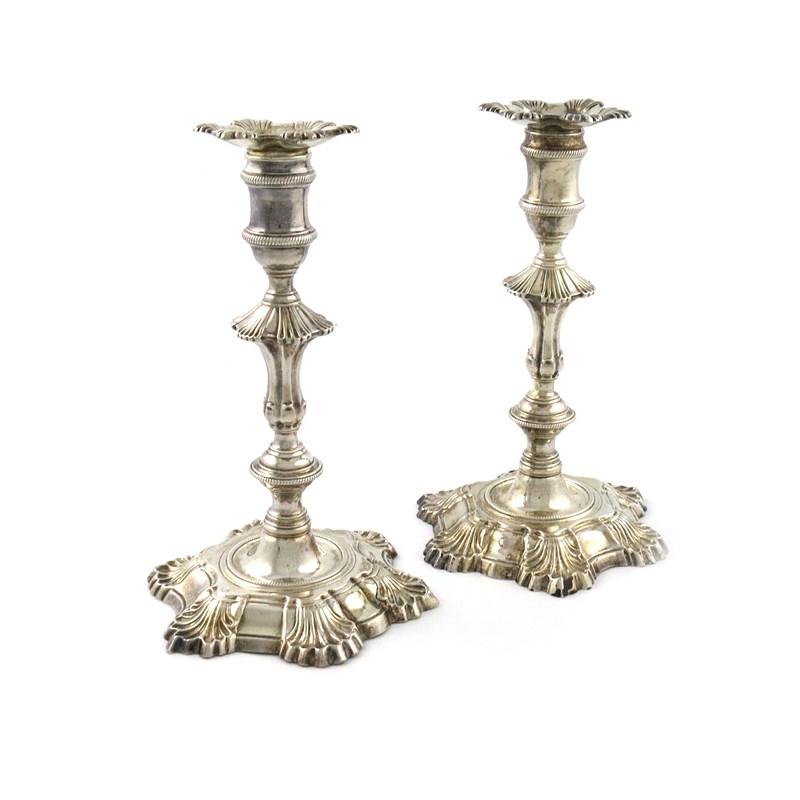 A pair of George II cast silver candlesticks