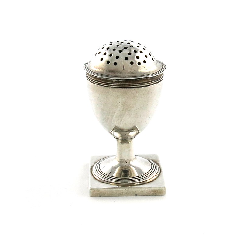plain urn form, reeded borders, on a raised square base, engraved with a crest, height 7.5cm, approx. weight 1.2oz.