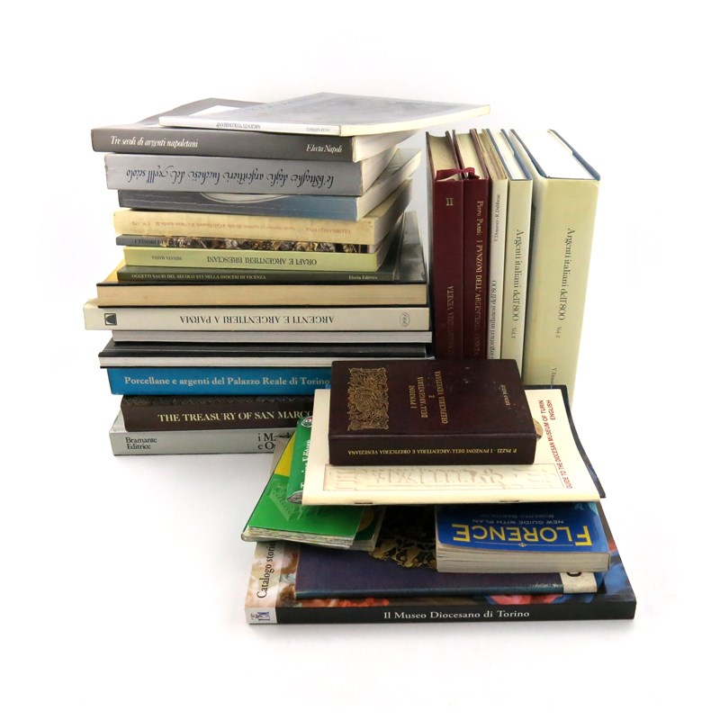 including Pazzi, P., Punzoni Dell' Argenteria Veneta, 1992, two volumes, Donaver, V., and Dabbene, R., Argenti Italiani dell' 800, 1989, volume 1 and 2, Milanesi dell'800, by the same author, Mastri Orafi e Argentieri in Piemonte, Argenti Genovesi, Tre Secoli di Argenti Napoletani, TI Marchi delle Argenterie e Oreficerie Siciliane, the treasures of San Marco, Venice, and other volumes. (qty)