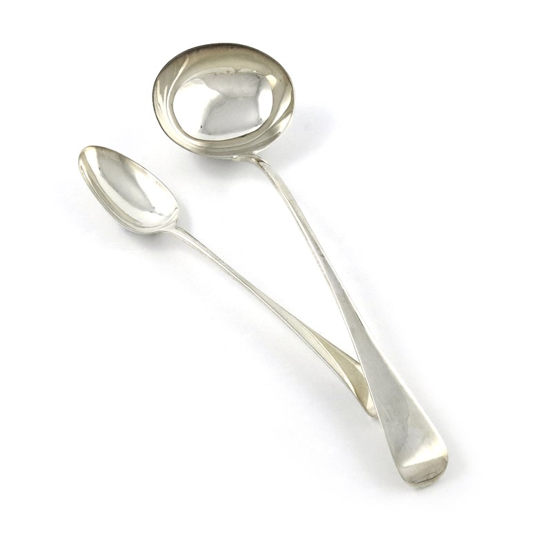 oval bowl, plain terminal, plus a George III Old English pattern basting spoon, by Thomas & William Chawner, probably London 1771, approx. weight 10.5oz. (2)