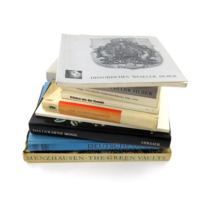including: Scheffler, W., Celler Silber, Dusseldorfer Goldschmiedekunst 1596-1918, Schatze aus der Fremde, Deutsche Gold-Schmiedekunst, Ullstein Silberbuch, Kasseller Silber, Barockes Silber Aus Rheinischen Sammlungen, Silber Auf Reisen and other volumes. (qty) (Two Boxes).