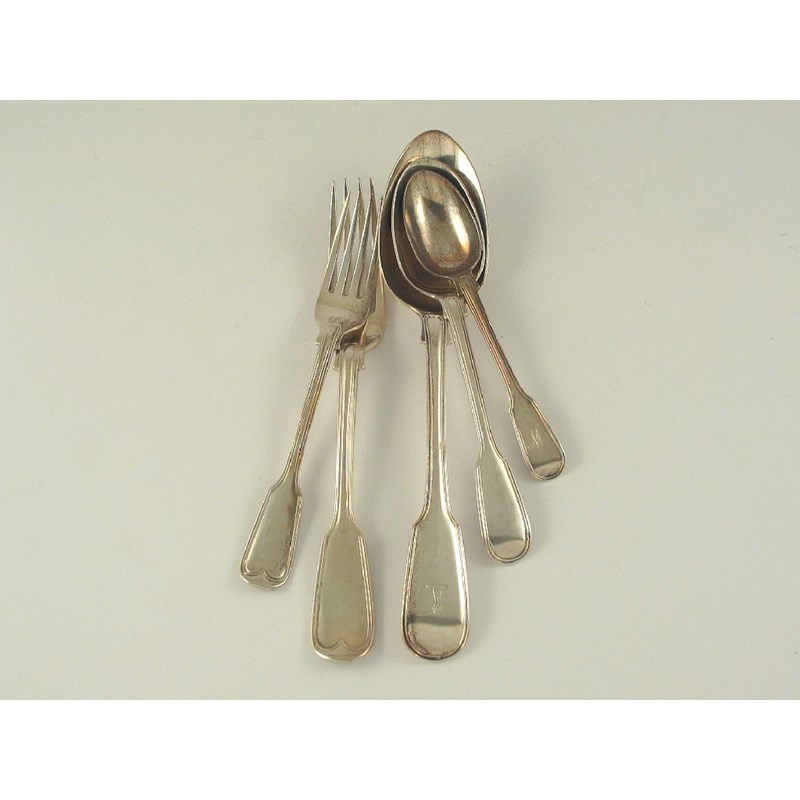 A collected or composite service of fiddle and thread pattern flatware comprising: twelve...