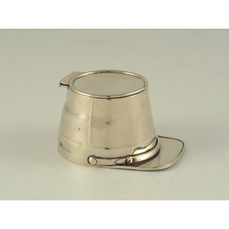 A novelty box in the form of a Regimental cap, by Wilson & Gill, Birmingham, 1914.