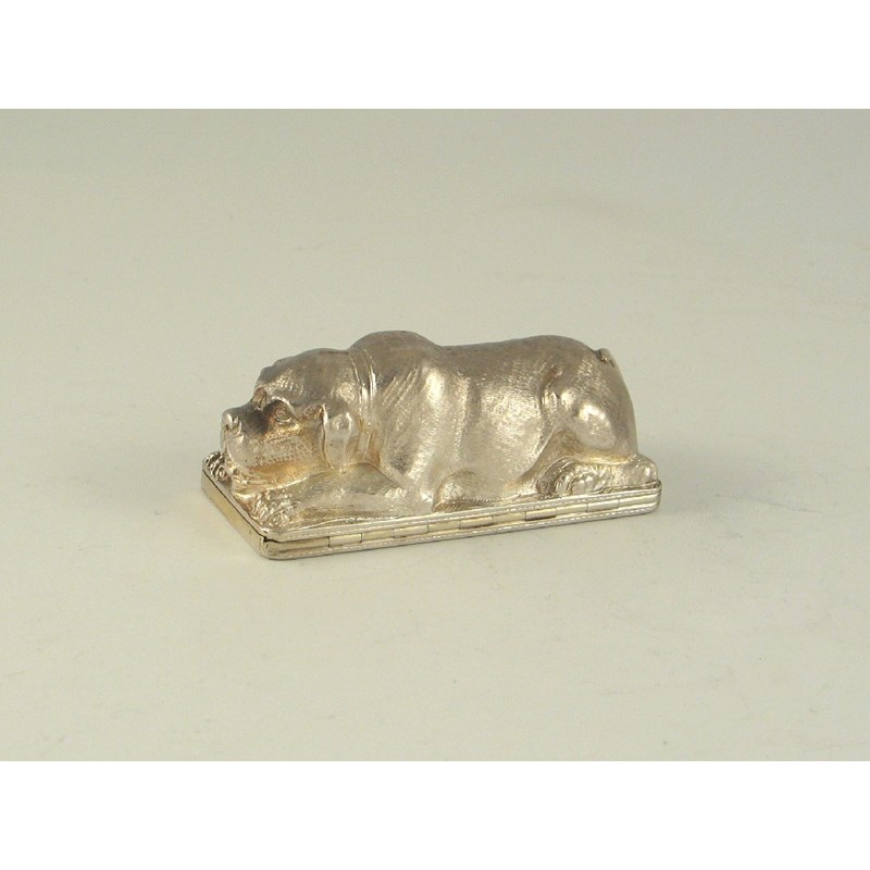 A 19th century French novelty snuff box, in the form of a slumbering dog, 1850-70, 2.25oz.