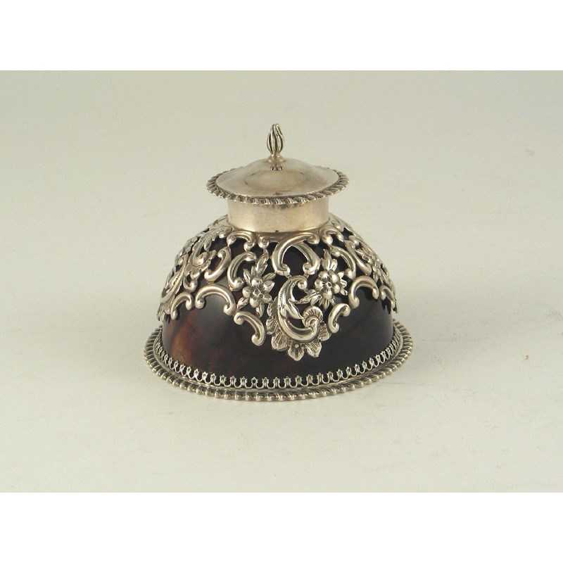 A Victorian mounted tortoiseshell inkwell, London, 1894, (two makers marks).