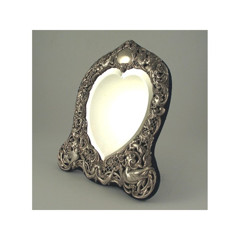A Victorian heart shaped easel mirror, (relined), by William Comyns, 1895.
