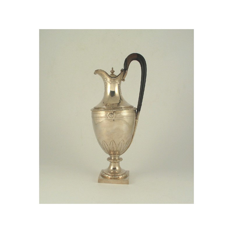 A George III vase shaped hot water jug, with bead borders, unmarked, circa 1780 , 27oz.