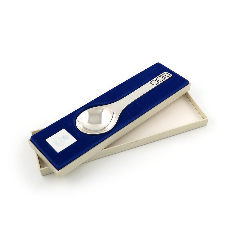 circular bowl, tapering stem, engraved '200', the reverse of the stem inscribed '1776 United States of America 1976', in a fitted case, length 14.7cm, approx. weight 2oz.
