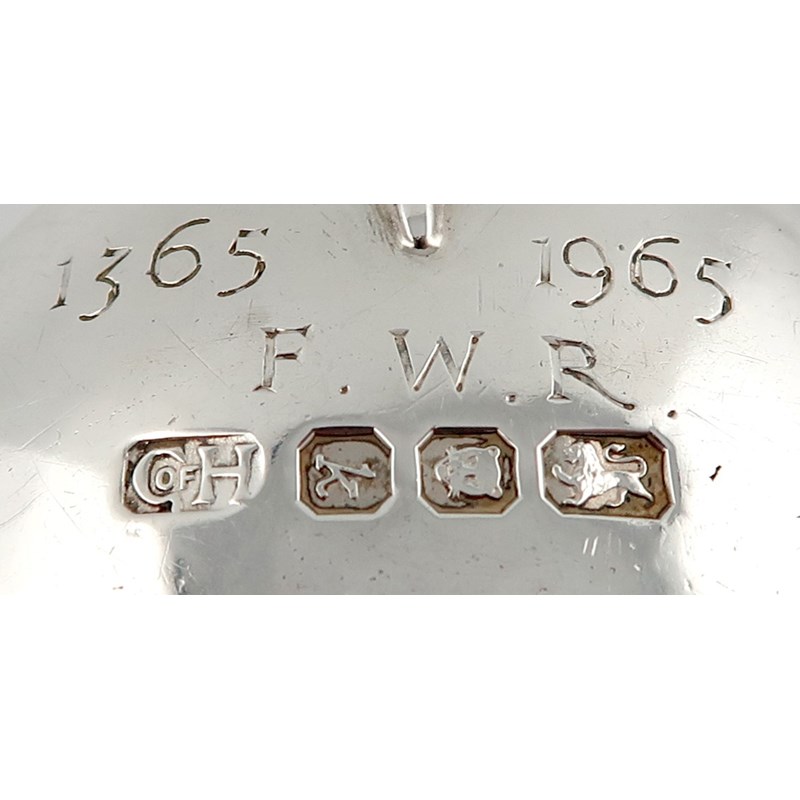 celebrating the 600th Anniversary of the Company, the spoon is a replica of the one given to the company by Humphrey Bowen in 1625, the back of the bowl inscribed '1365-1965' and 'FWR', length 18.2cm, approx. weight 3oz.