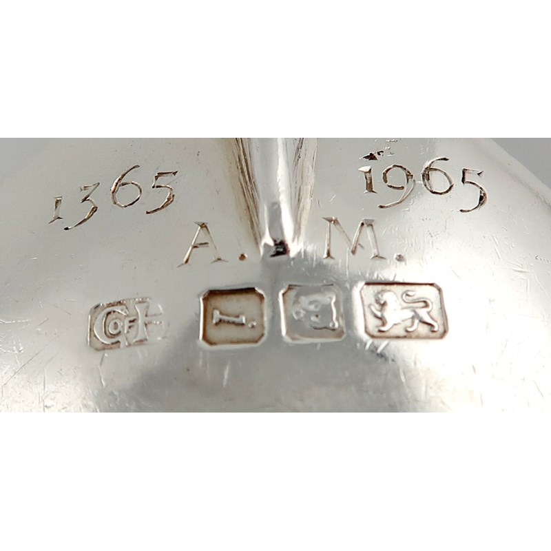celebrating the 600th Anniversary of the Company, the spoon is a replica of the one given to the company by Humphrey Bowen in 1625, the back of the bowl inscribed '1365-1965' and 'AM', length 18.2cm, approx. weight 3oz.
