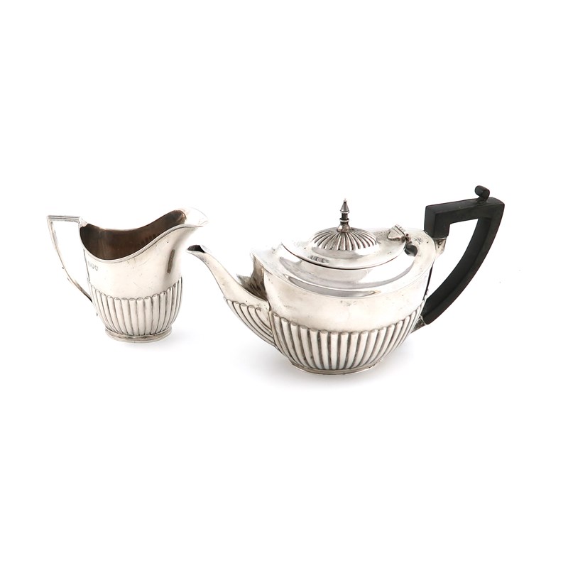 A matched Victorian and Edwardian silver teapot and cream jug,