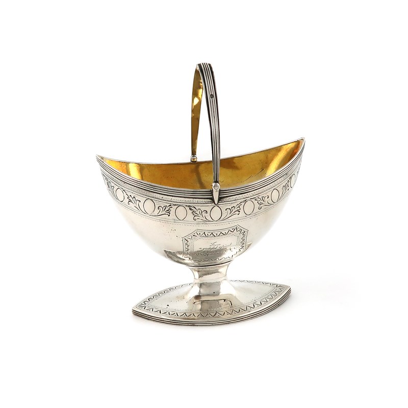 A George III silver swing-handled sugar basket,