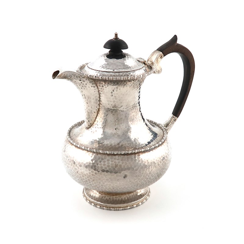 baluster form, spot-hammered decoration, scroll handle, height 18.8cm, approx. weight 18oz.