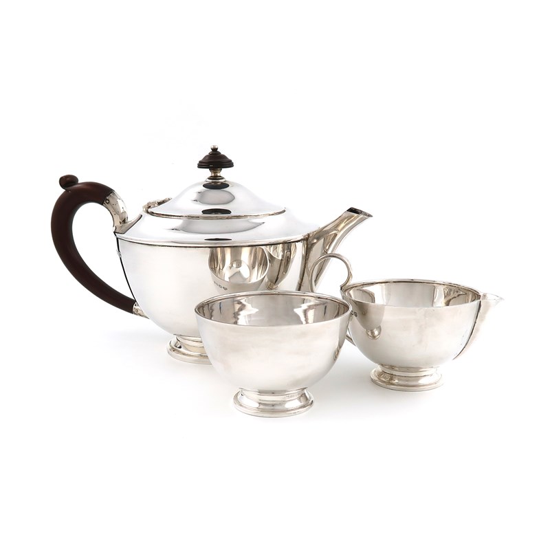 A three-piece silver tea set,