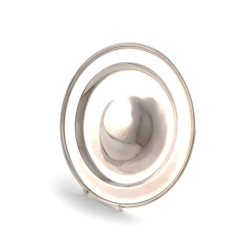 plain circular form, slightly raised centre, reeded border with traces of gilding, diameter 20.4cm, approx. weight 10.9oz.