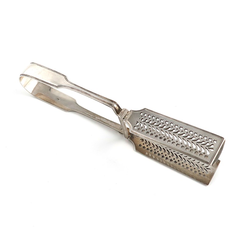 A pair of Victorian silver Fiddle and Thread pattern asparagus tongs,