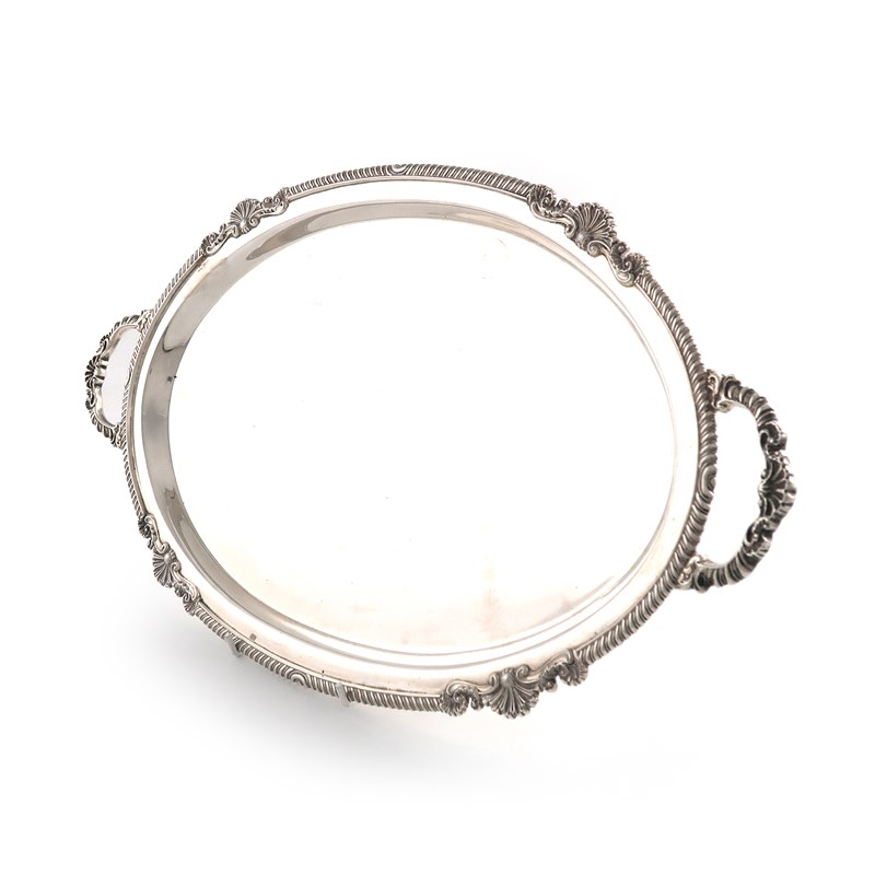 oval form, shell and gadroon border and handles, length handle to handle 45cm, approx. weight 36oz.