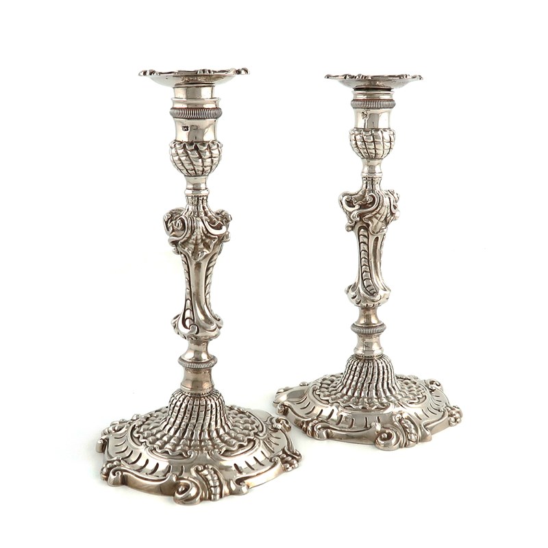 A pair of George II silver candlesticks,