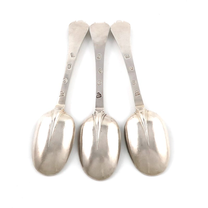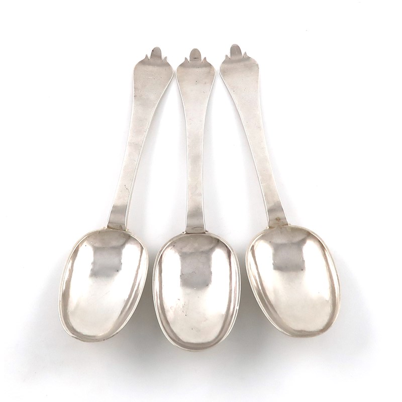 oval shaped bowls, the reverse of the bowls with plain raised rat-tails, length 19.5cm, approx. weight 7oz. (3)