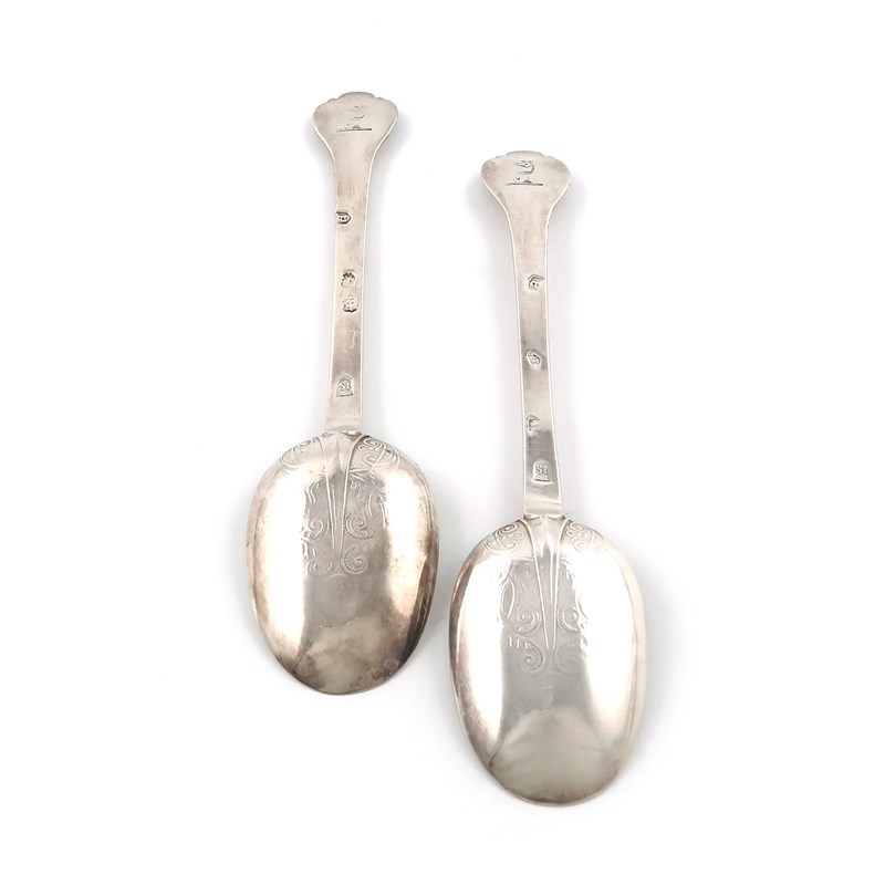 A pair of Charles II silver Lace-back and Front Trefid spoons,