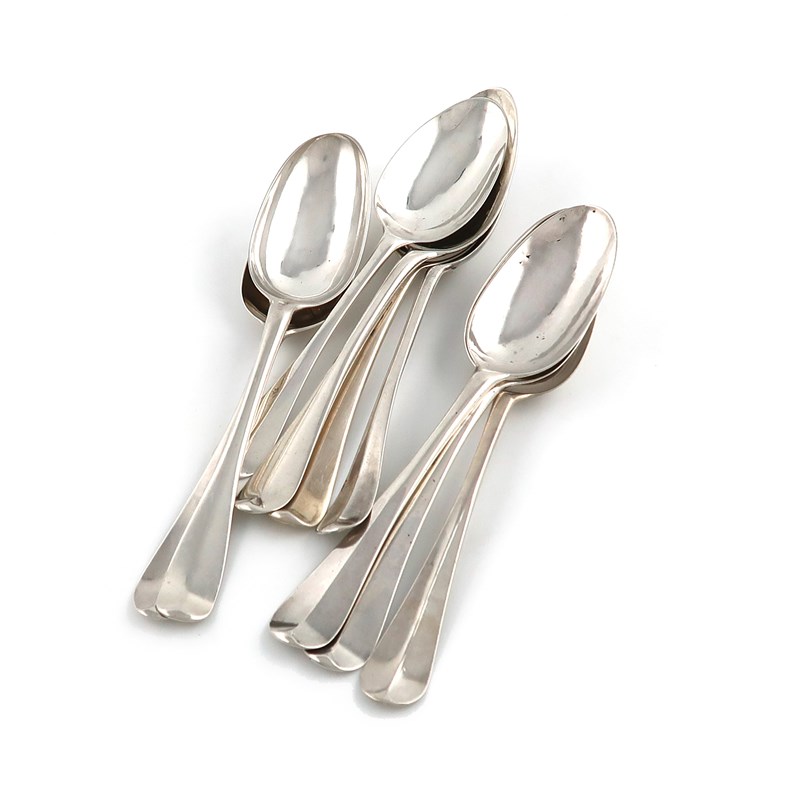 A collection of nine 18th century silver Hanoverian pattern tablespoons,
