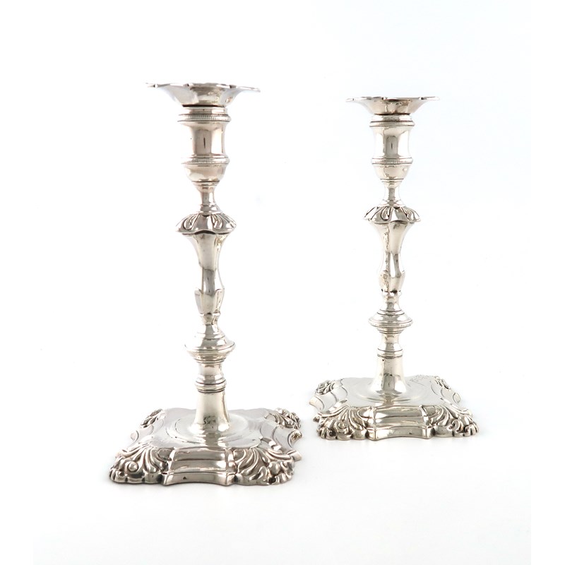 A pair of George II cast silver candlesticks