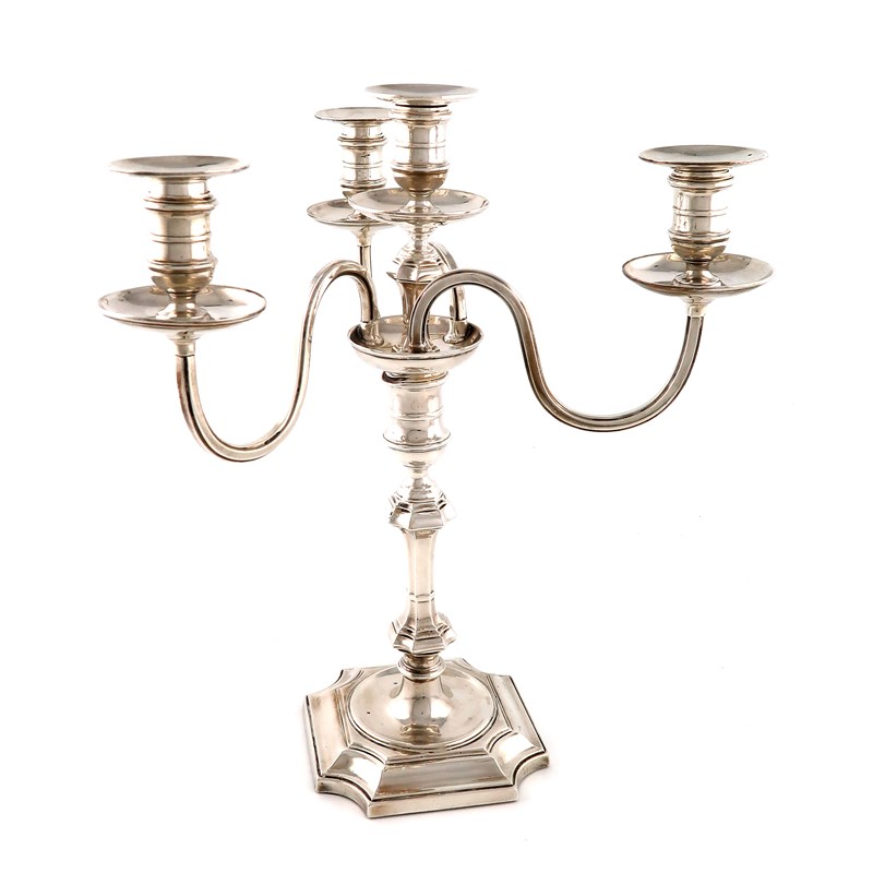 A silver four-light candelabrum