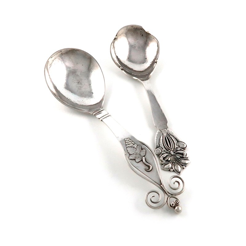 Two Danish silver handmade serving spoons