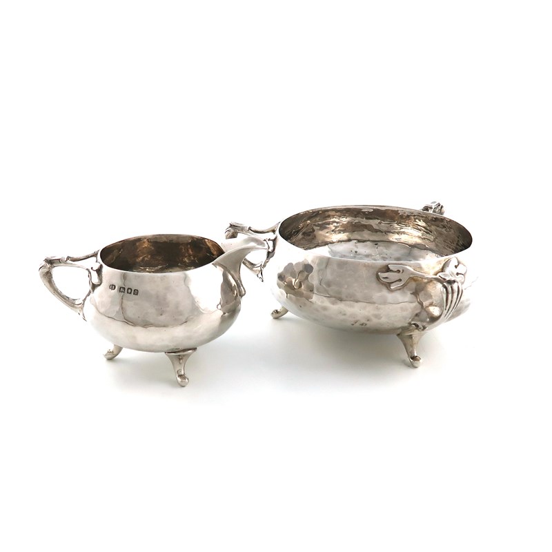 By Charles Edwards, an Art Nouveau silver cream jug and sugar bowl,