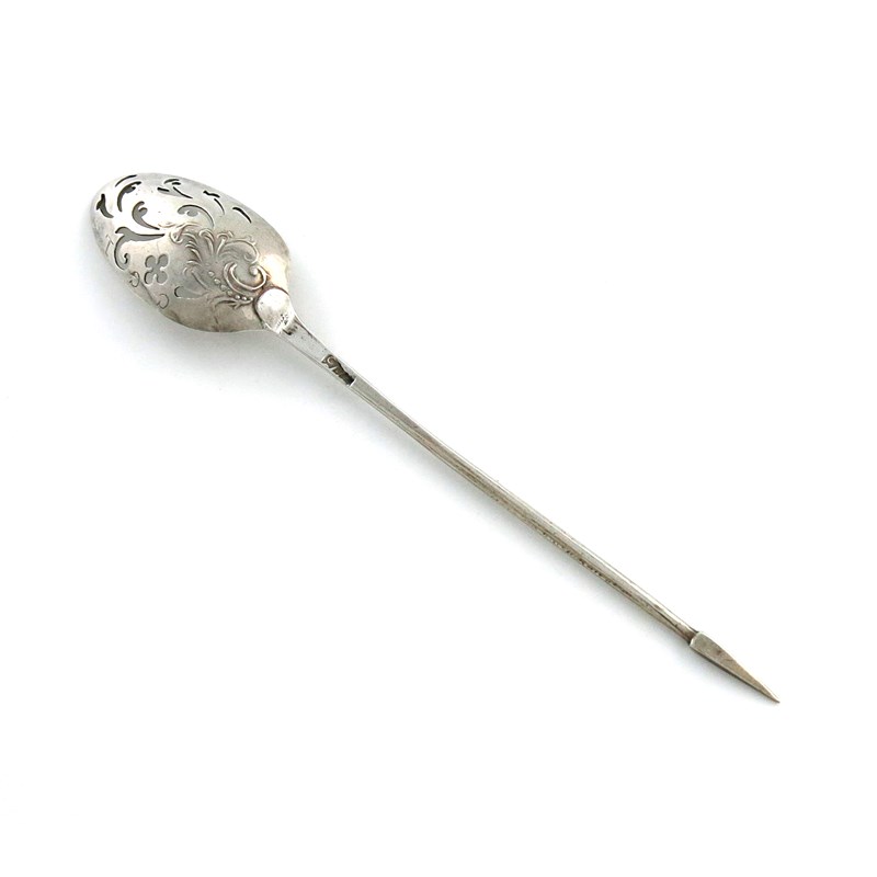 the reverse of the bowl with scroll decoration, the bowl pierced with mullets and scroll, length 13.5cm, approx. weight 0.2oz.