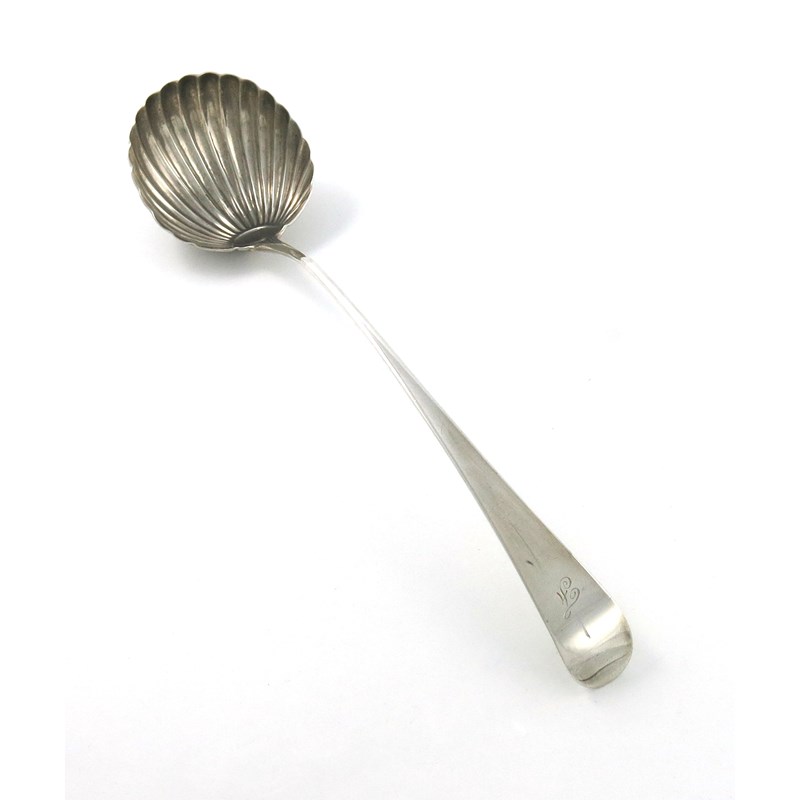 circular shell bowl, the terminal with initials, length 36cm, approx. weight 6.8oz.
