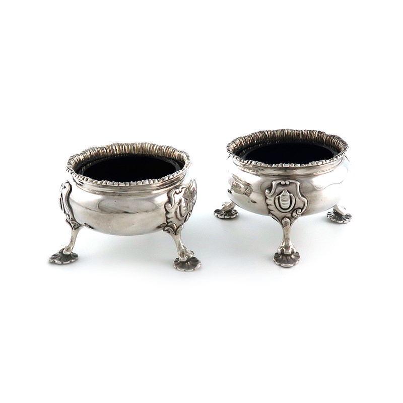 A large pair of George IV silver salt cellars