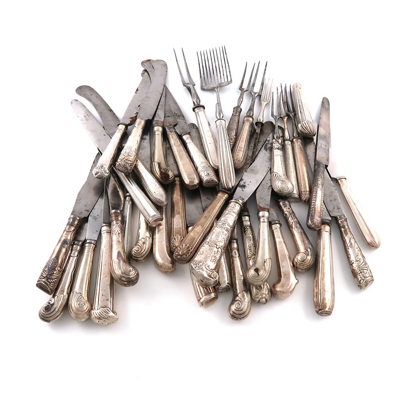 plus a silver-handed steel serving fork, Sheffield 1790, a carving fork, five table forks and a silver serving fork, lacking handle. (qty)