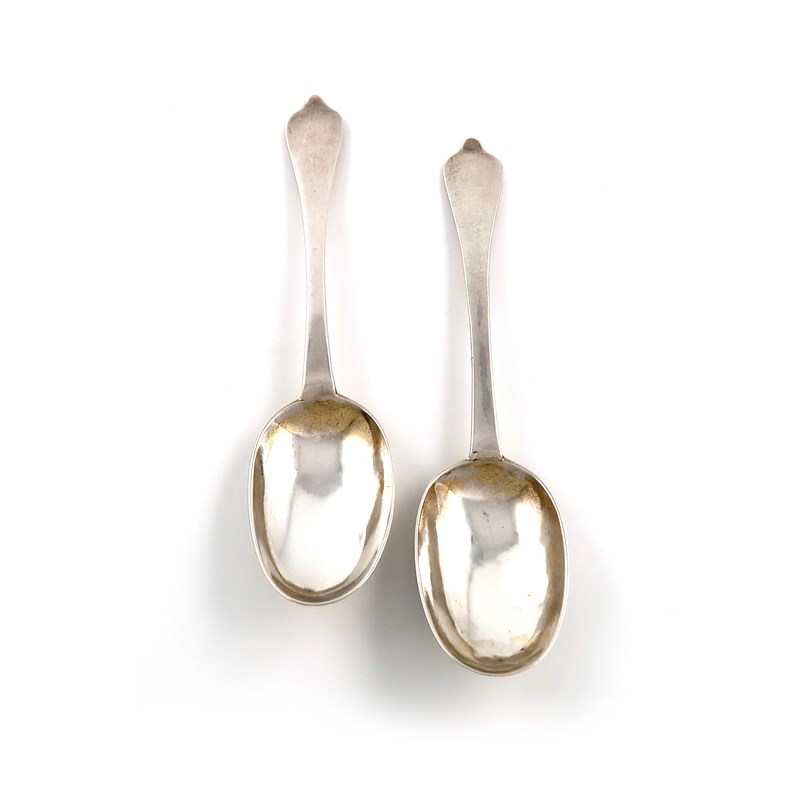 the reverse of the oval bowls with plain rat-tails, with traces of gilding, length 19.9cm, approx. weight 3.6oz. (2)
