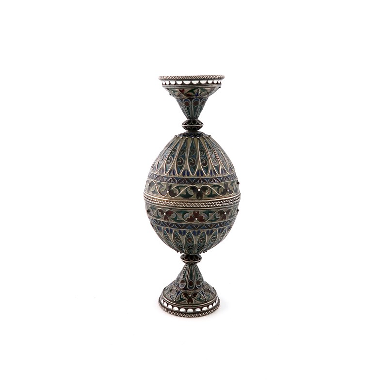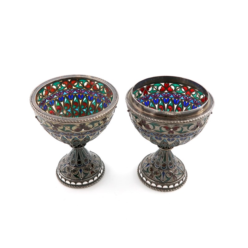 A Russian silver and plique-à-jour enamel double cup