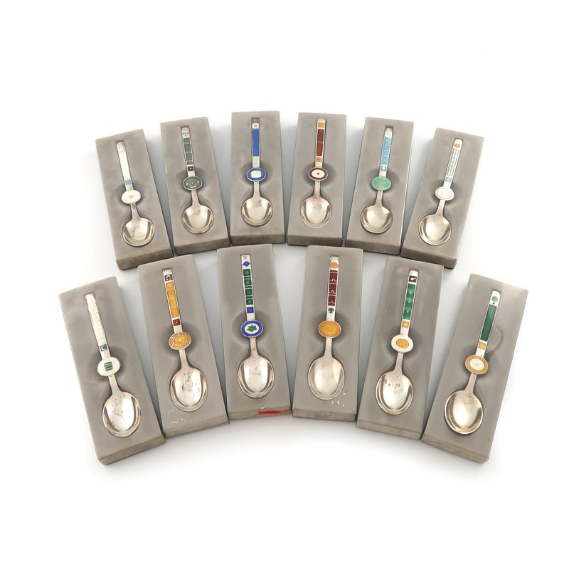 By A. Michelsen, a set of twelve Danish silver and enamel spoons of the month, Paul Rene Gauguin,